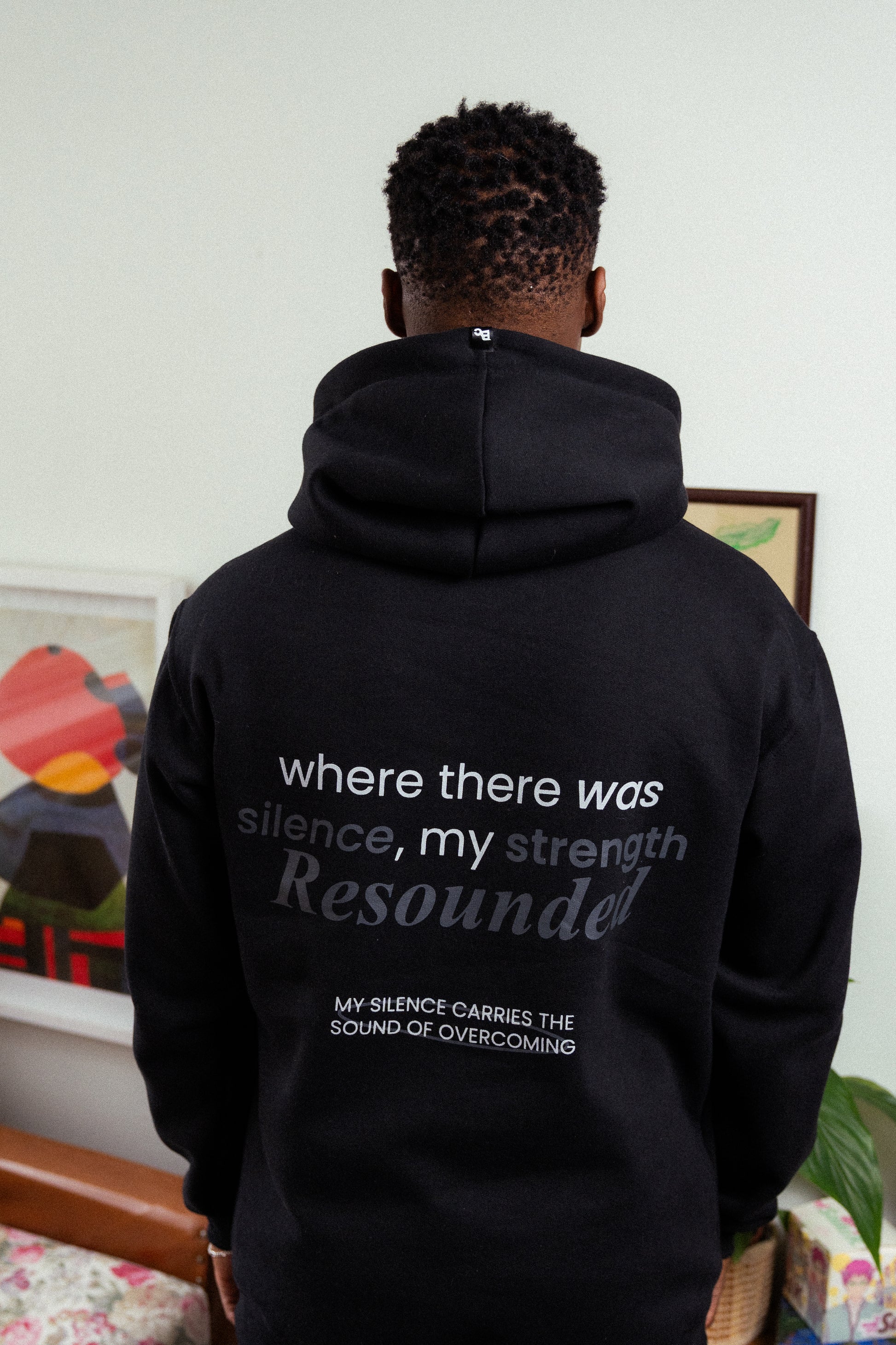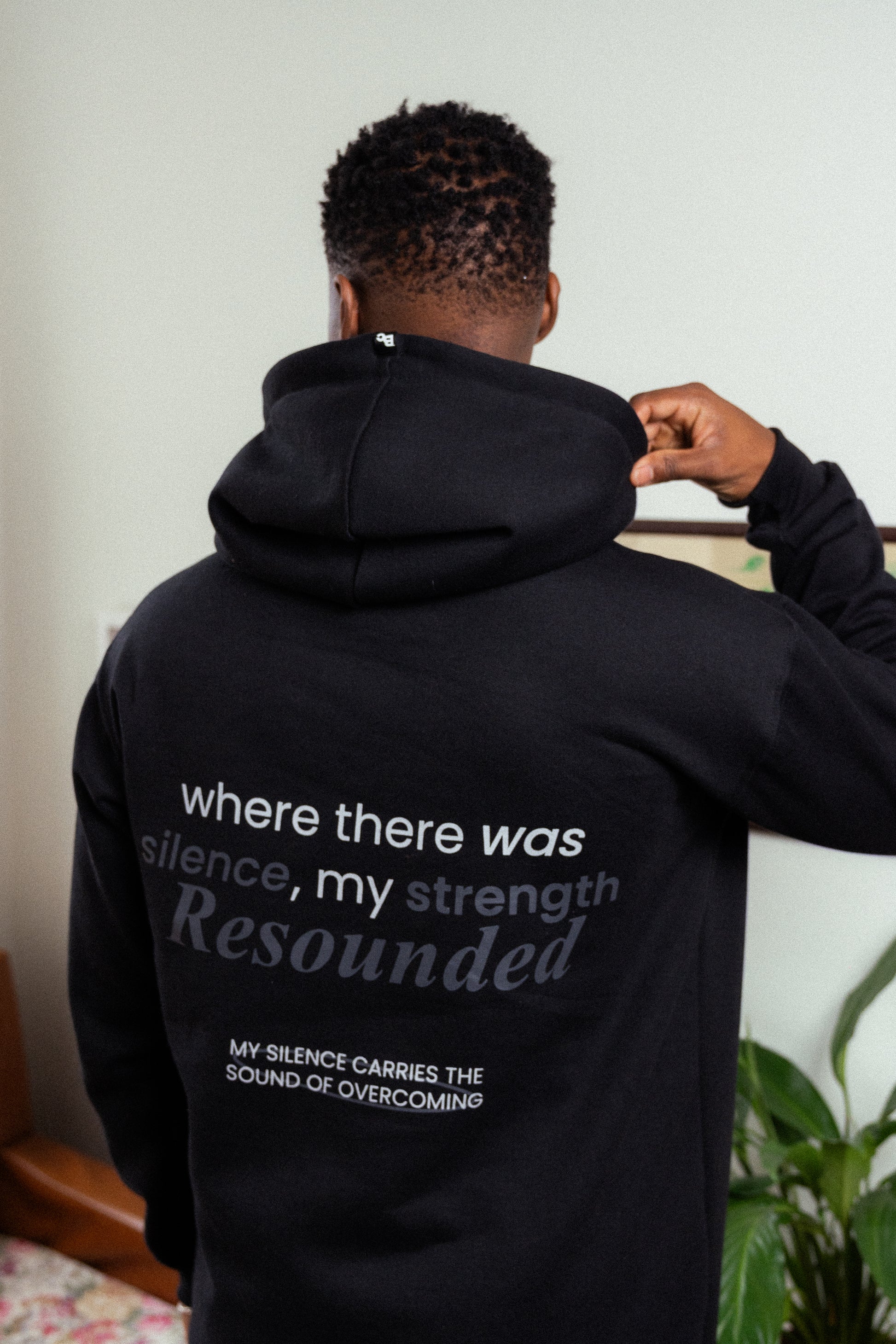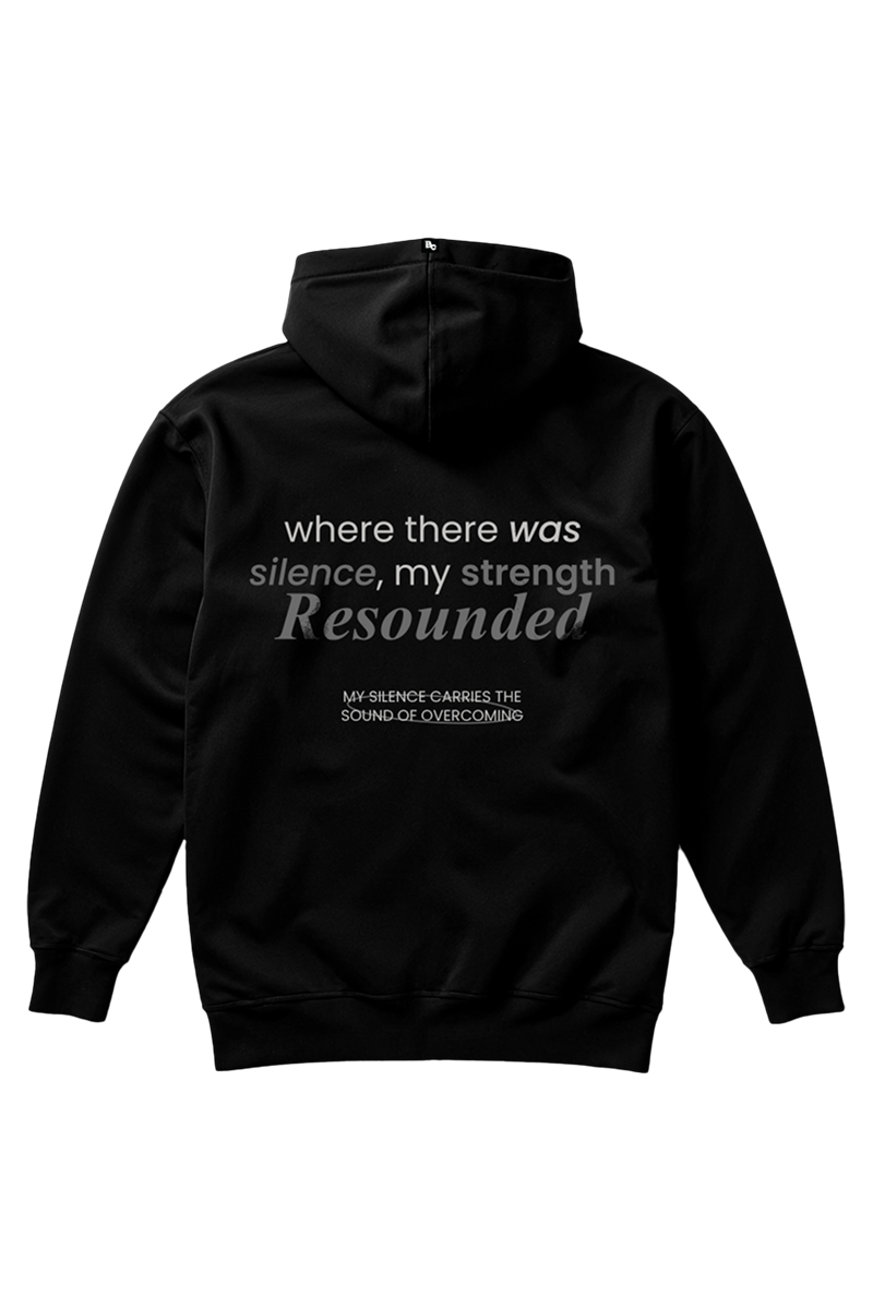 Onde havia silêncio, a sua voz ecoou. Esse moletom carrega uma mensagem de superação e força interior. A frase em destaque traz o peso de quem já passou por momentos de silêncio, dúvidas e incertezas, mas encontrou um novo som: o da própria evolução.