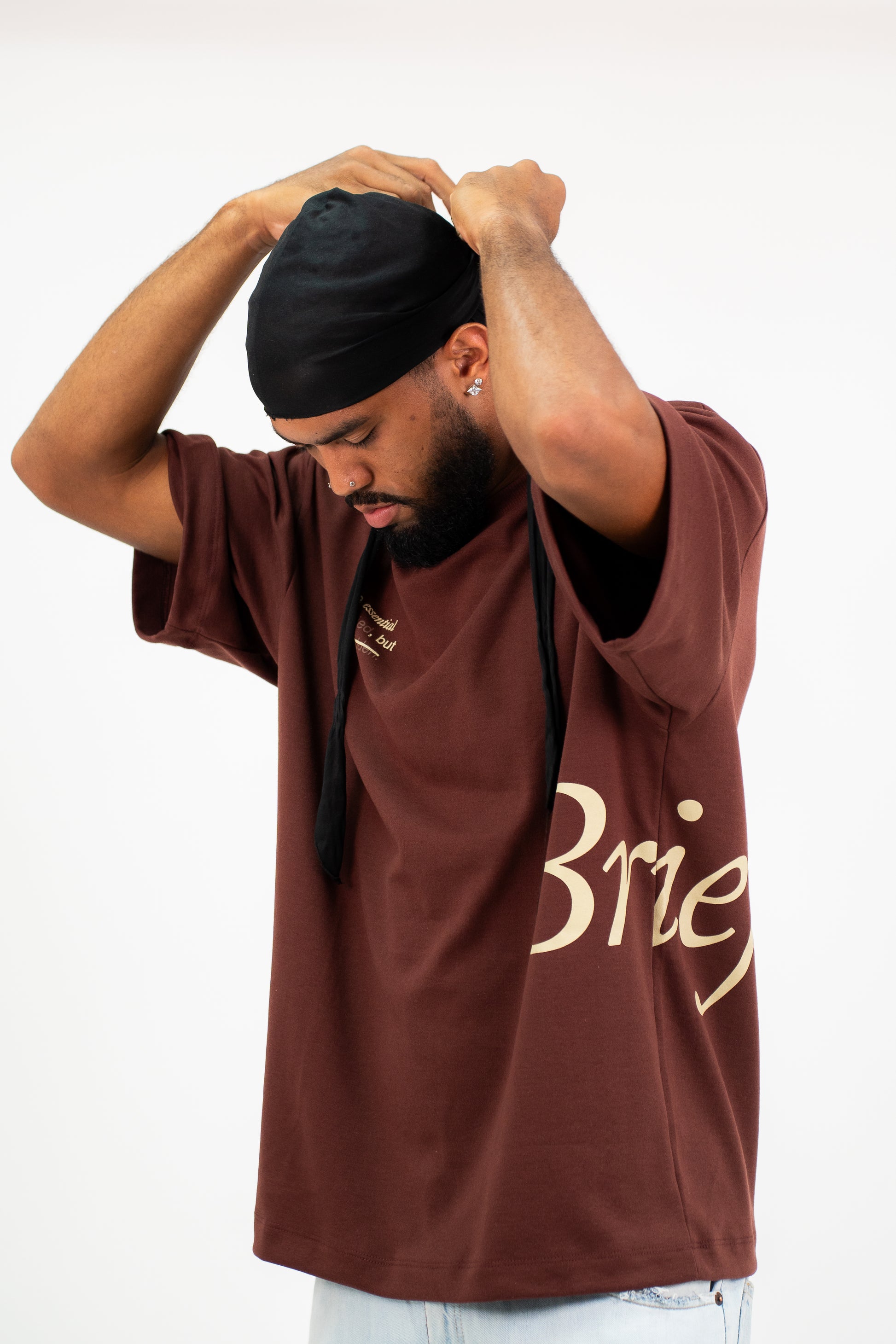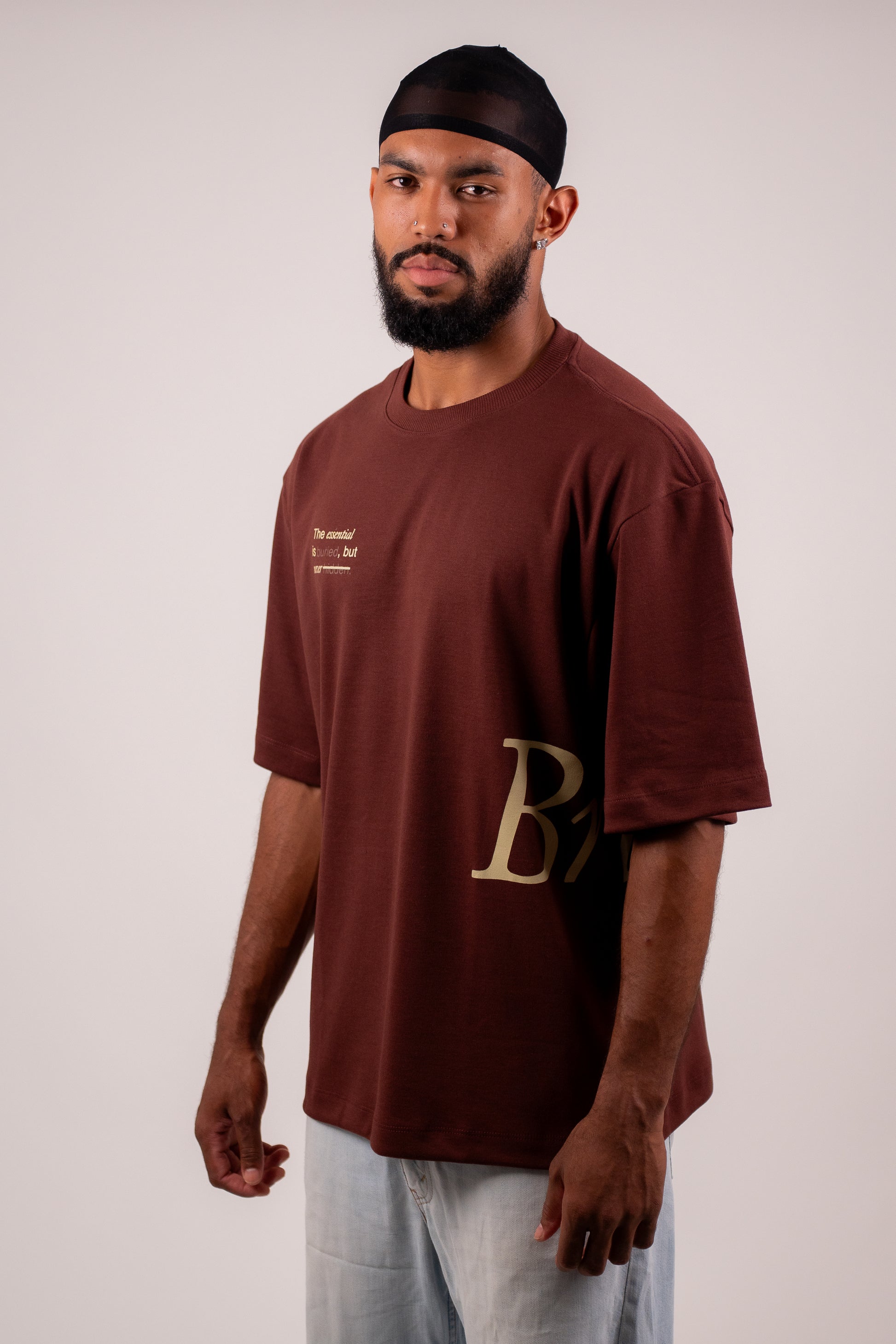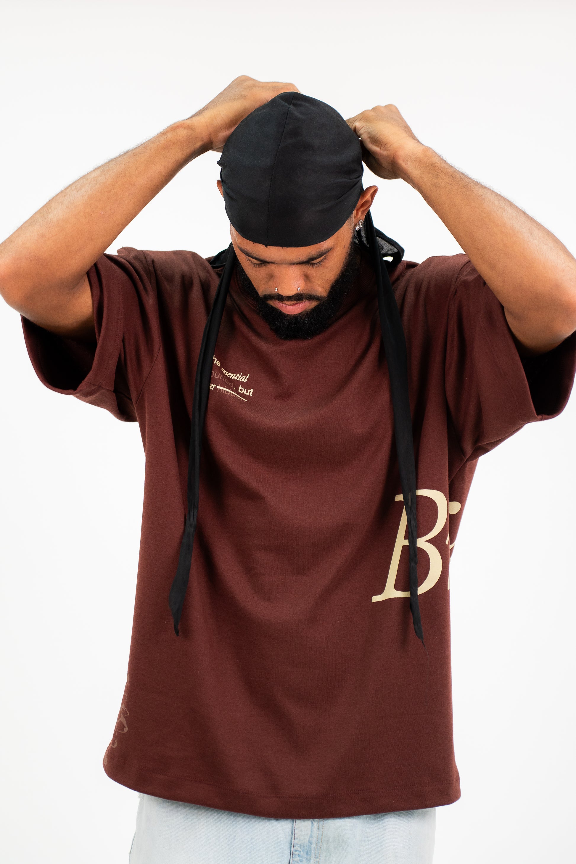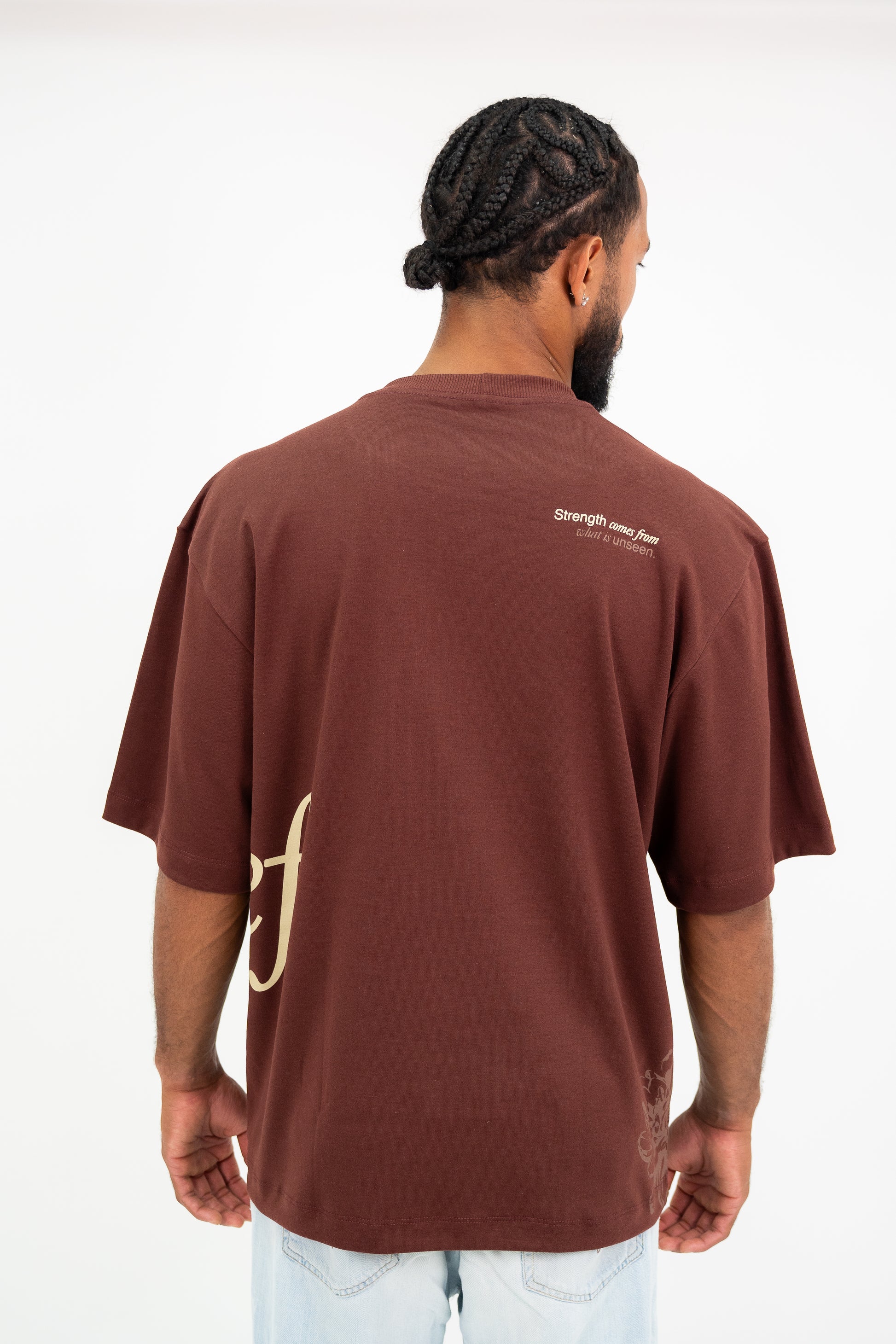 Confecionada com tecido suedine 100% algodão na cor marrom e feita com malha pesada. A peça possui 270g (alta gramatura). O design apresenta estampas em silk, simbolizando detalhes essenciais de uma peça.